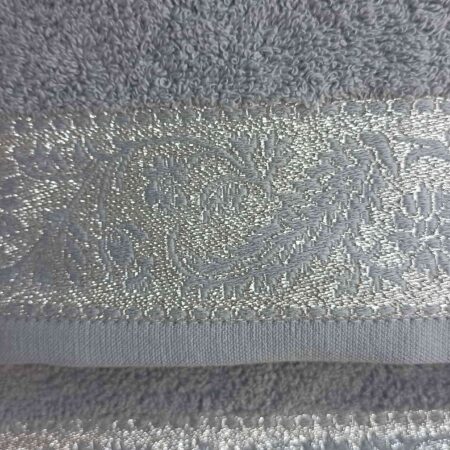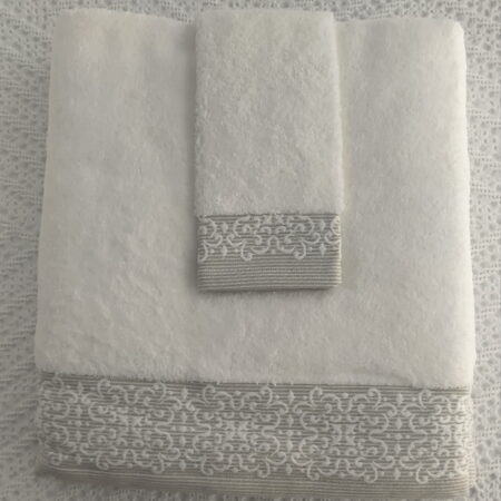 Juego Toallas 2 piezas (lavabo + ducha) gris claro bordado hilo plata