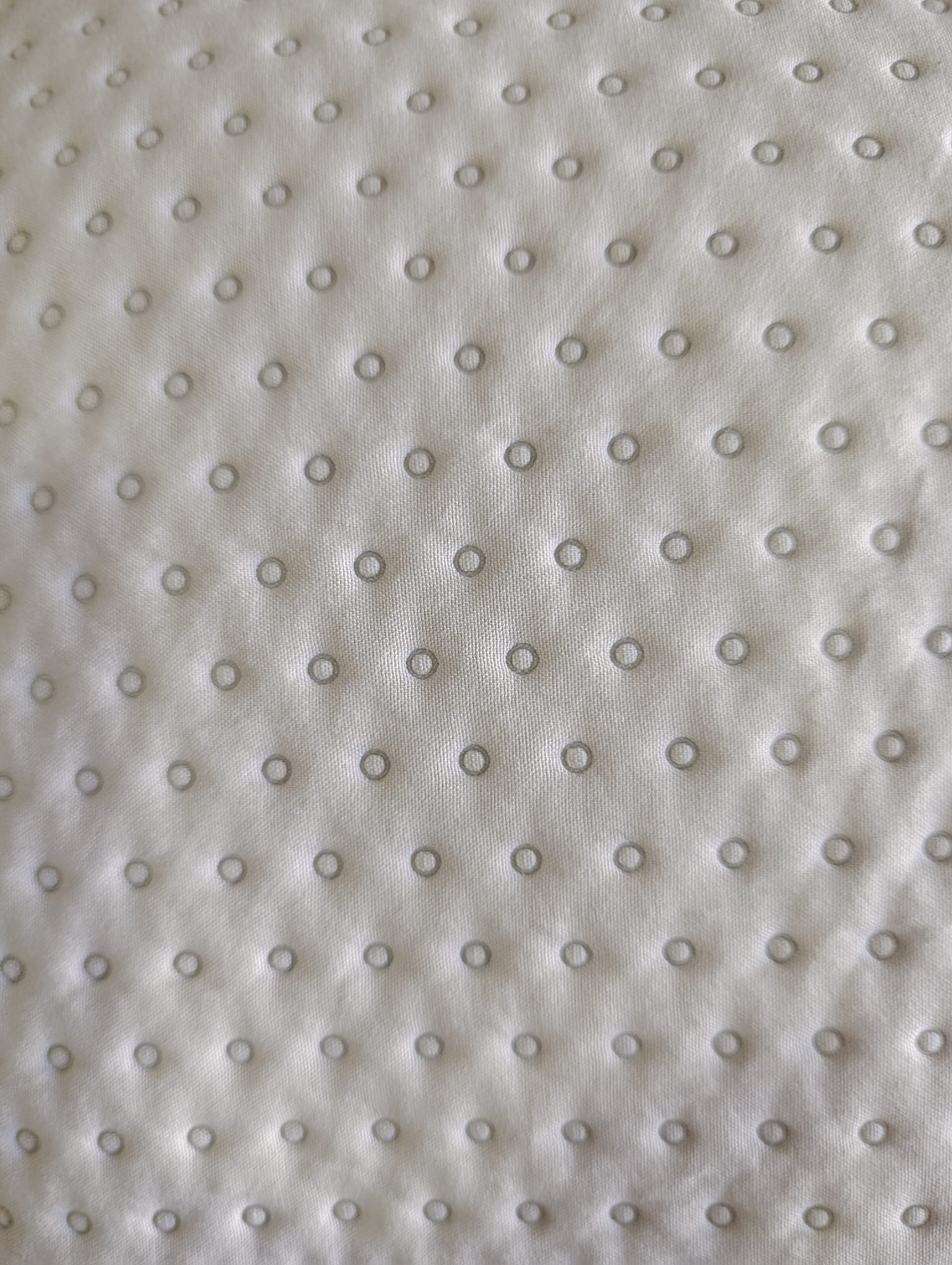 Su diseño combina una delicada textura en relieve de pequeños puntos, que aporta volumen y distinción, con un volante inferior estampado de estilo romántico que añade movimiento y personalidad a la cama.