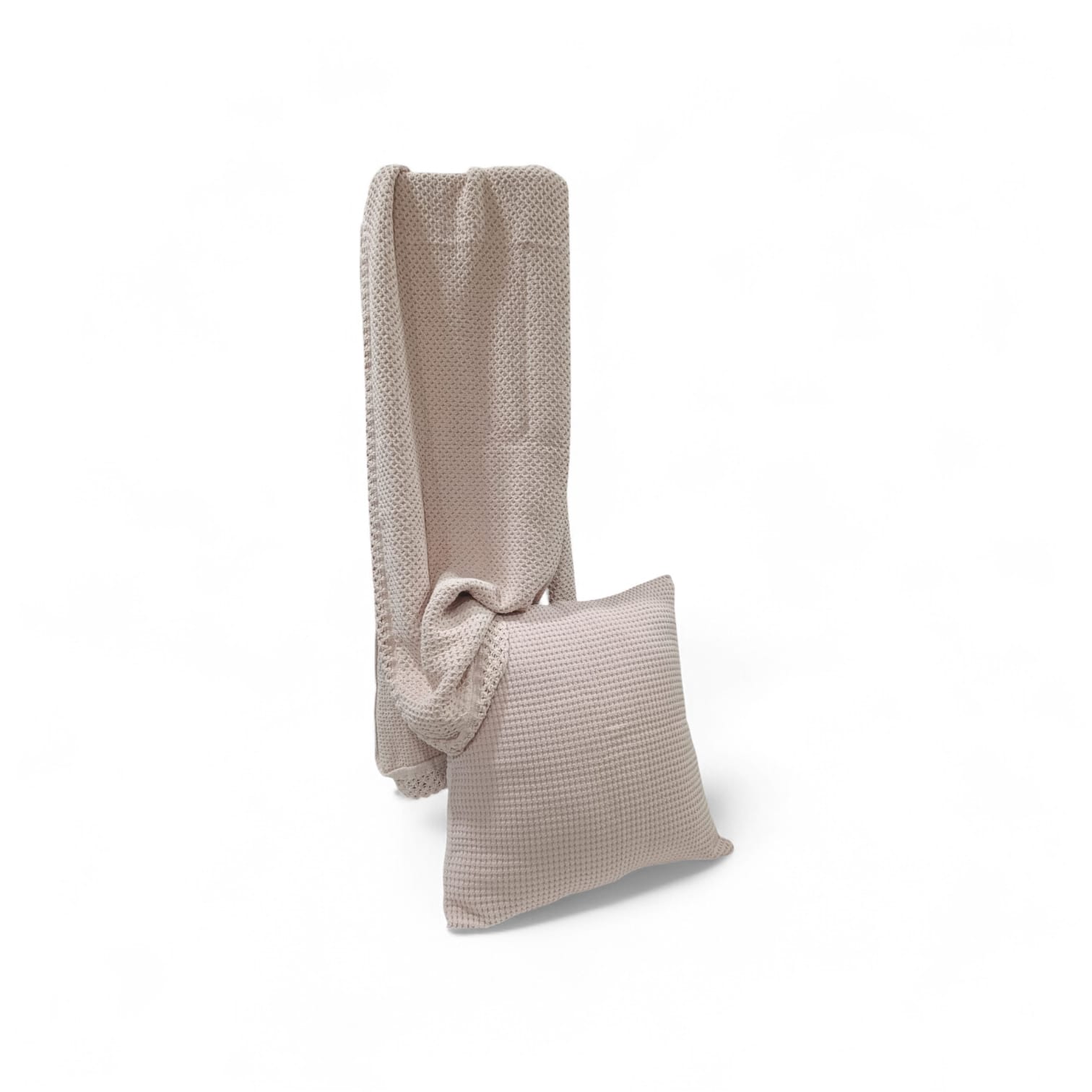 Su tejido estructurado, con relieve suave y detalles cuidadosamente rematados, aporta profundidad visual y una sensación envolvente que transforma cualquier espacio en un refugio de serenidad.